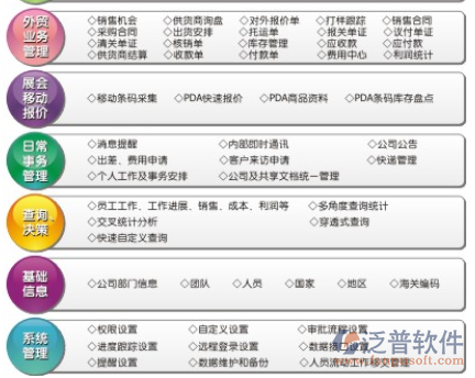 泛普外貿(mào)客戶管理軟件,針對(duì)國(guó)內(nèi)進(jìn)出口企業(yè)貿(mào)易特點(diǎn)和業(yè)務(wù)管理需求,以客戶關(guān)系為核心,以業(yè)務(wù)管理流轉(zhuǎn)為主線,外貿(mào)客戶管理系統(tǒng)將客戶關(guān)系管理與業(yè)務(wù)系統(tǒng)等有機(jī)結(jié)合,從線索客戶的尋找,到意向客戶的跟進(jìn)及產(chǎn)品開(kāi)發(fā),到銷售合同的跟蹤以至到客戶服務(wù),形成了一套對(duì)客戶挖掘及維護(hù)的綜合管理體系。