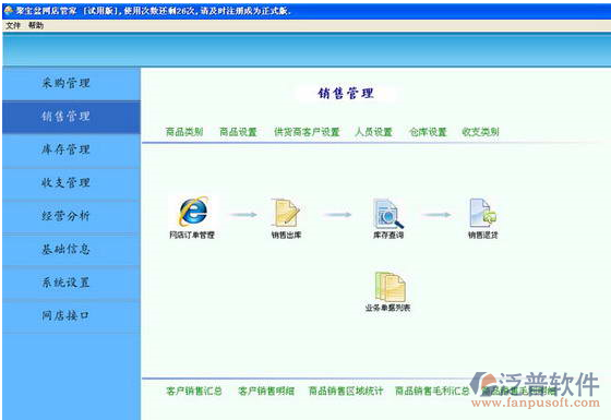 ☆ 泛普軟件提供淘寶、拍拍、有啊、易趣等網店的標準訂單導入接口,自動完成訂單的出入庫及打印功能,省去手工錄入的麻煩。