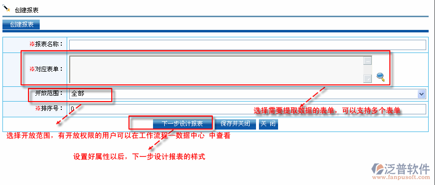 用戶進入【個人事務】—【工作流管理】—【報表設計】,點擊【創(chuàng)建報表】進入報表創(chuàng)建頁面,。